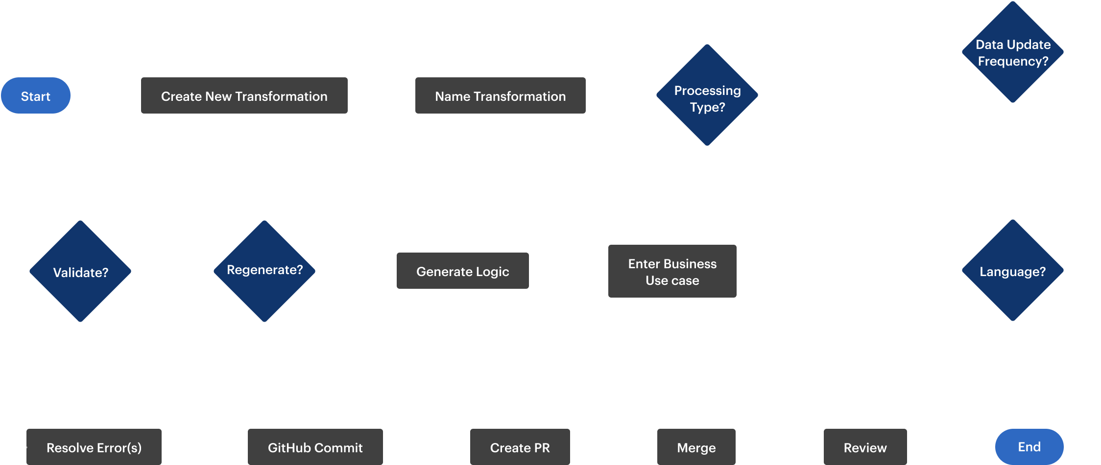 To illustrate the core functionality of Datascape, I created a streamlined user flow diagram that maps the essential end-to-end process—from defining pipeline requirements through creation, testing, and deployment. This visualization demonstrates the logical progression of steps a data analyst would follow when using the tool, highlighting how Datascape simplifies what was previously a fragmented workflow.